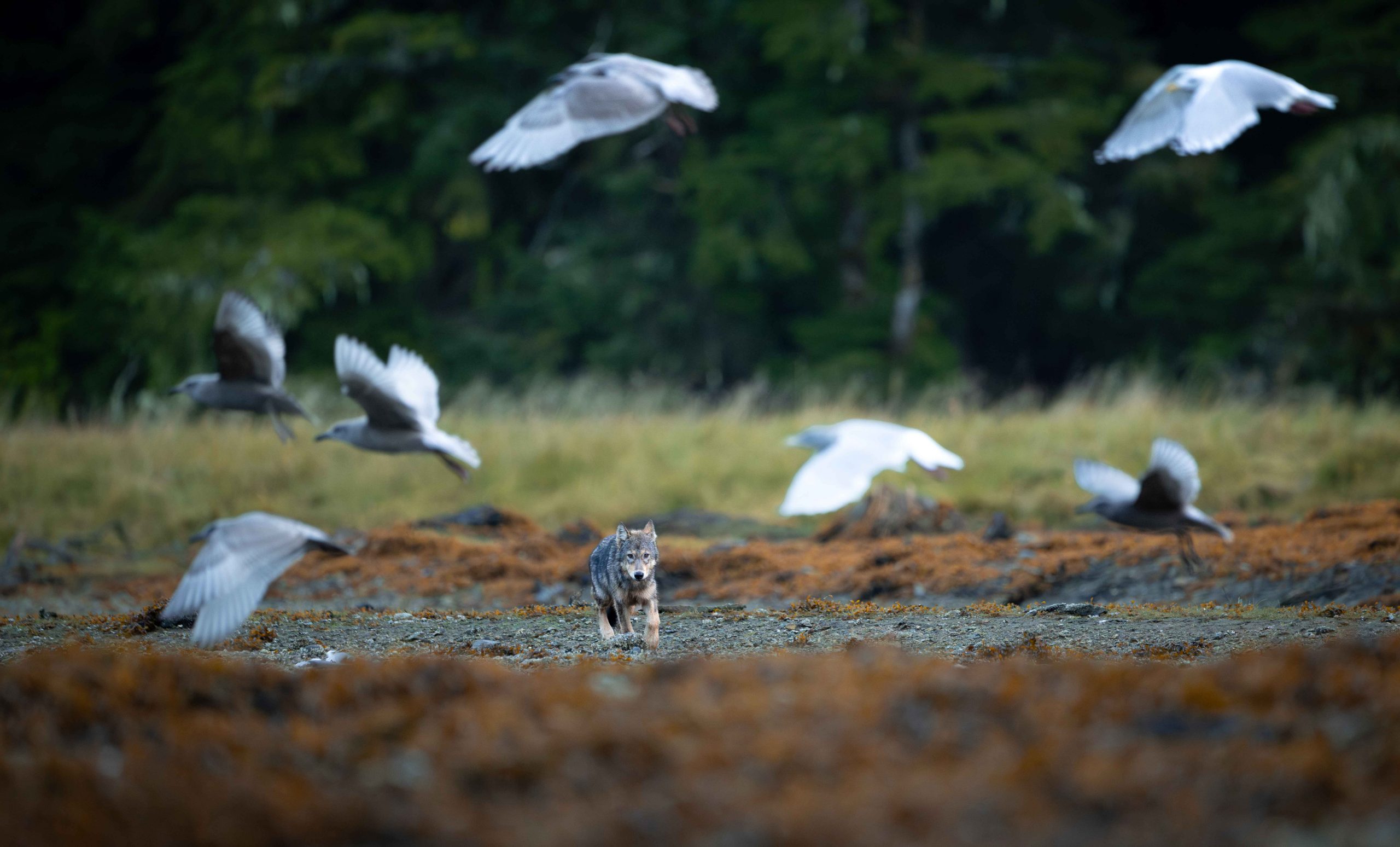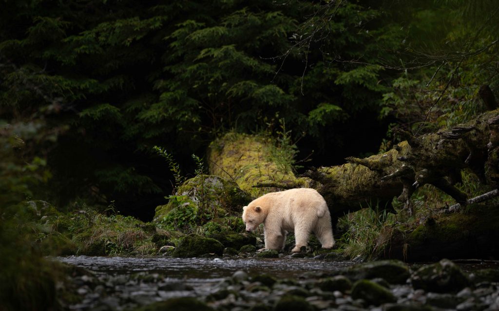À l’extrême ouest du Canada, la Colombie-Britannique est une terre de forêts primaires et de rivières sombres, où l’océan et les nuages s’infiltrent jusque dans les montagnes. Dans cette nature dense et silencieuse vit l’ours esprit, l’un des animaux les plus rares au monde, dont le pelage blanc tranche avec le vert profond de la forêt. Autour de lui, les loups de la côte longent les plages, les loutres glissent entre les algues, et les orques sillonnent les fjords. Un territoire brut et intact, où chaque rencontre est un privilège, et où la nature rappelle, sans bruit, sa puissance et sa beauté.